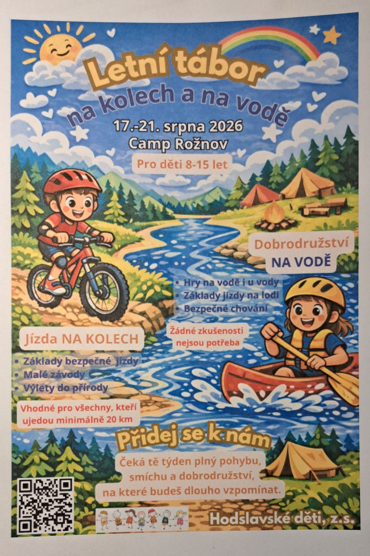 Pobytový tábor je určen dětem, které mají rády aktivní pohyb a sportovní výzvy. Čeká je týden plný cyklistiky, vodáckých aktivit, her v přírodě a týmových soutěží.